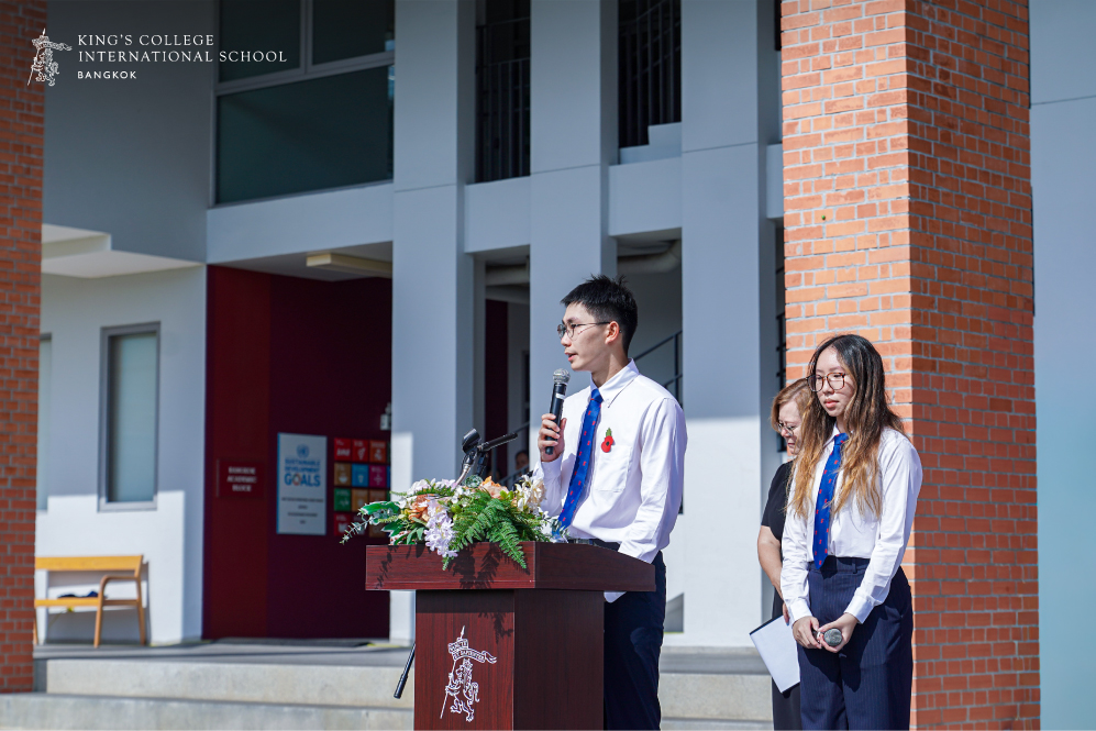 ครอบครัวคิงส์คอลเลจกรุงเทพได้มารวมกัน ณ บริเวณ The Common เพื่อร่วมรำลึกและแสดงความเคารพต่อผู้ที่ได้อุทิศตนและเสียสละในยามสงคราม