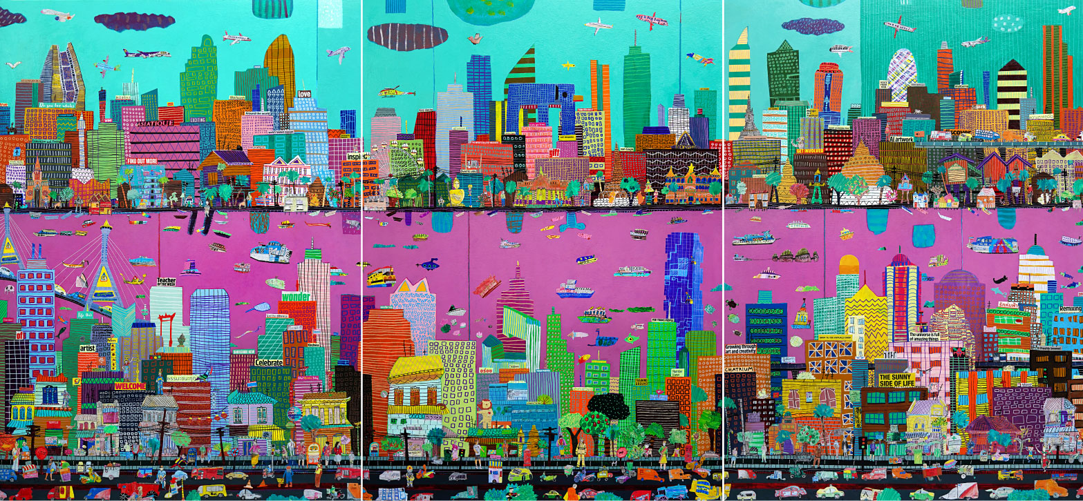 Created through a collaboration between our Primary School students and this year’s Artist in Residence, Francesco Lietti, City of Smiles brings Bangkok to life through the students’ perspectives. Using colour, drawing and collage, students created a vibrant mixed-media cityscape that reflects their imagination and creativity.